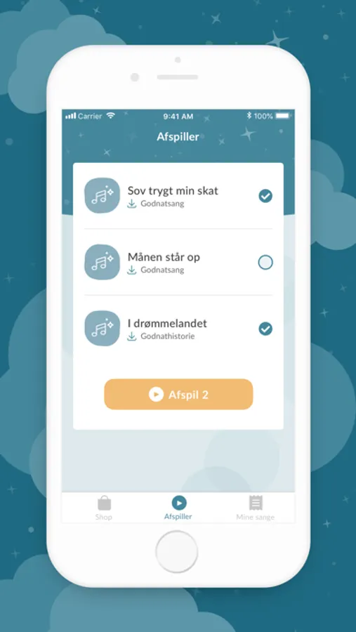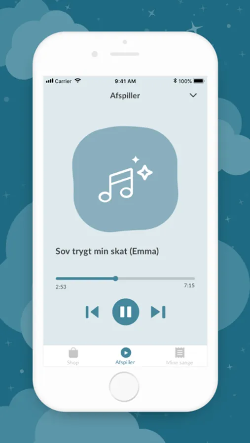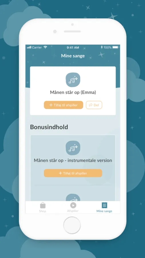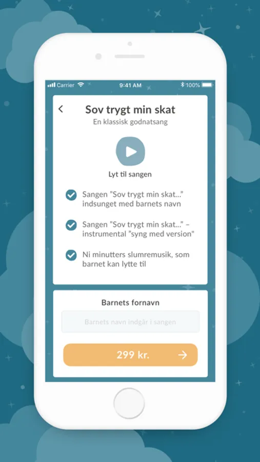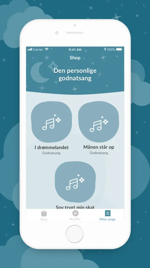 Gennem denne app kan du købe og afspille dit barns personlige godnatsang. Hver godnatsang er helt unik, da barnets navn indsynges i sangen.