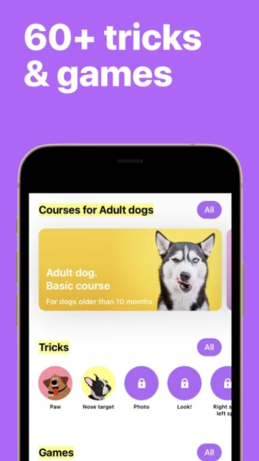 Get 150+ exclusive guided videos for all essential skills and behaviors (reliable recall, leash training, potty training, sit, down, stay, and more), learn tricks, play games and live a happy life with your furry friend.