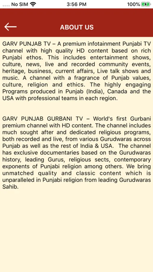 GARV PUNJAB TV – A premium infotainment Punjabi TV channel with high quality HD content based on rich Punjabi ethos. This includes entertainment shows, culture, news, live and recorded community events, heritage, business, current affairs, Live talk shows and music. A channel with a fragrance of Punjab values, culture, religion and ethics. The highly engaging Programs produced in Punjab (India), Canada and the USA with professional teams in each region.