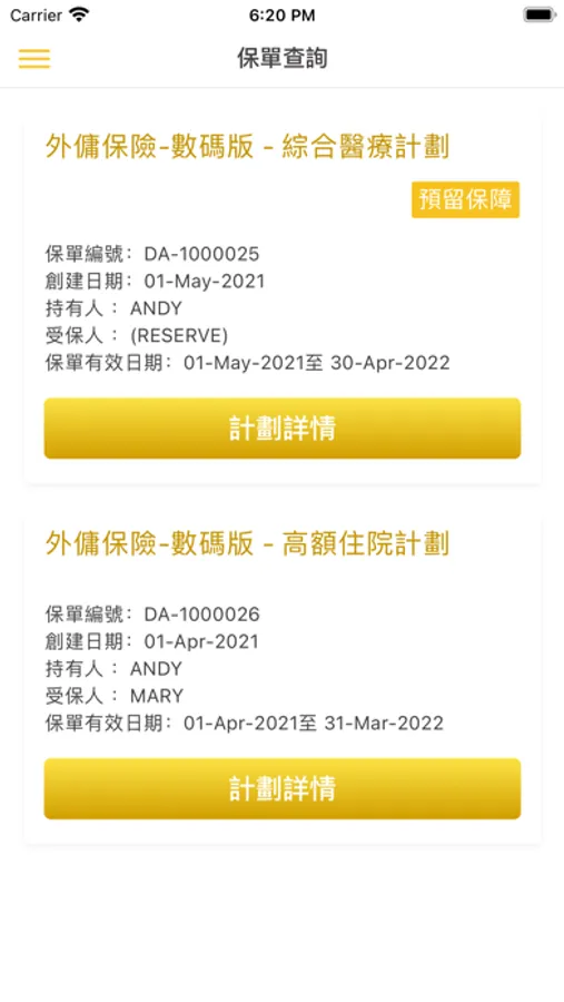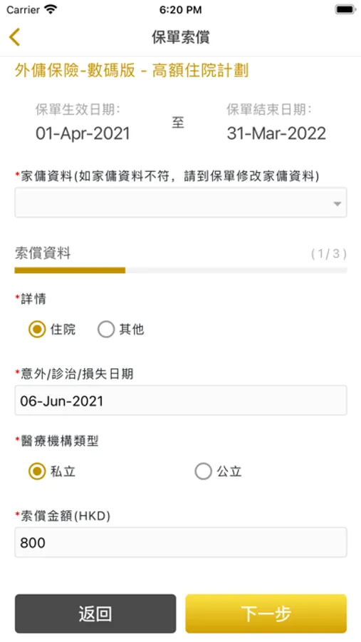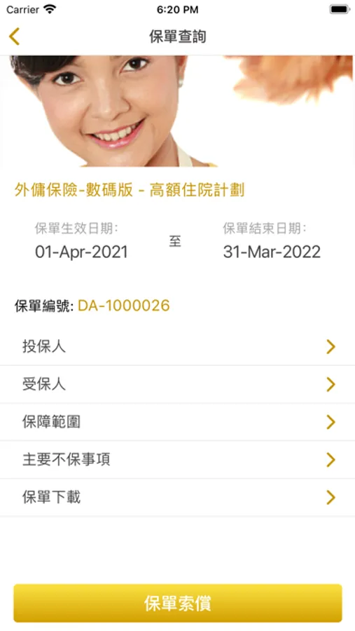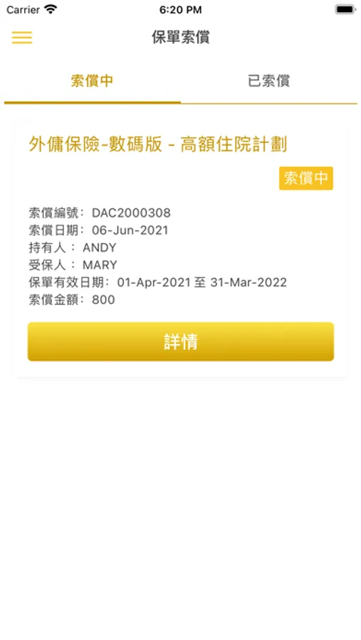 提交索償: 於程式上提交索償申請及查閱索償狀況