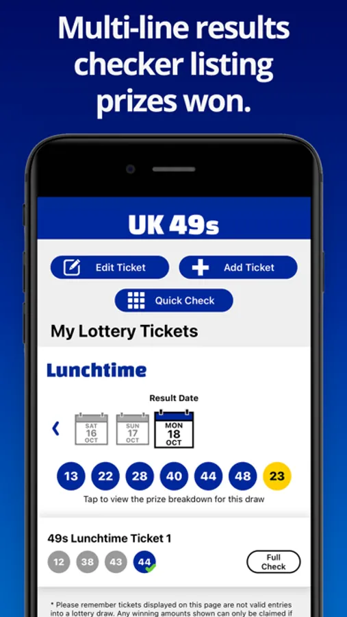 Enter and save your chosen numbers to see if you have won or to see how often they have come up in the past. You can also label your tickets – great if you play multiple lines or if you run a syndicate. The ticket checker also highlights prizes won on each ticket as well as calculating the total for each lottery. Only play lotteries on certain days of the week? Not a problem, you can exclude your checked tickets from draws you do not play.