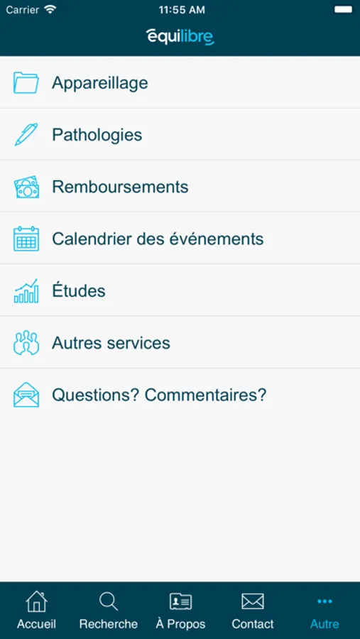 Équilibre propose au travers de cette application un guide d'appareillage complet regroupant toutes les solutions qu'elle offre à ses patients. Il comprend le descriptif de nos produits, de l'information sur le libellé de l'ordonnance mais aussi l'agenda de nos formations offertes par nos spécialistes. Ce guide est destiné aux professionnels de la santé.