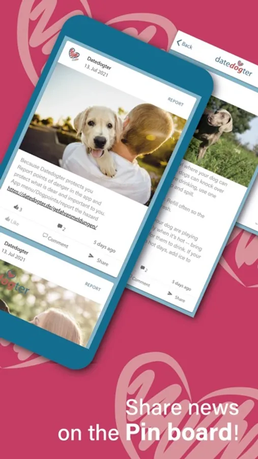 Share beautiful dog playgrounds, your favorite routes on the pinboard or in the chat! As you like.