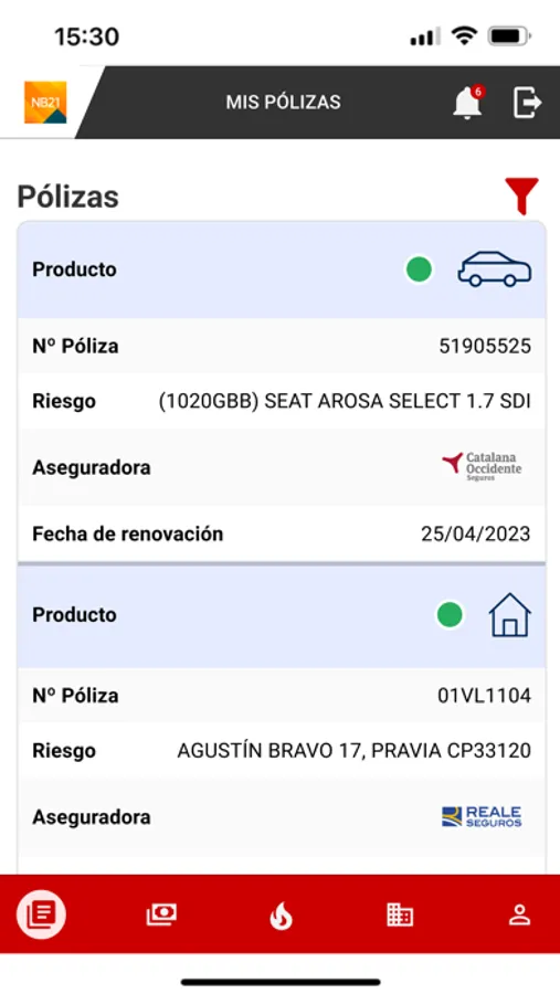 La aplicación gratuita para móviles de NB21 te permite gestionar directamente desde tu smartphone todo lo relativo a tus pólizas de seguros en cualquier lugar y en cualquier momento. Incluso podrás avisar de inmediato de los posibles siniestros o pedir información sobre nuevos productos. ¡Todo al alcance de tu mano! Con la app de NB21 podrás: