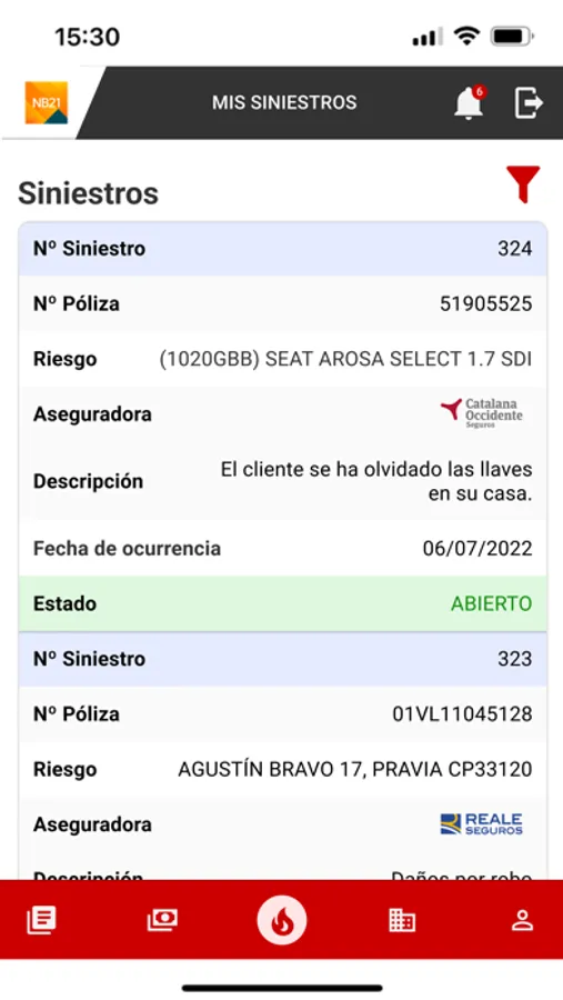 - Avisar de siniestros enviando fotos de los mismos y seguir la evolución de los mismos.