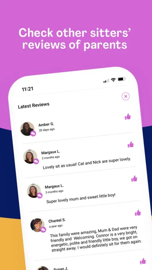 Bubble helps outstanding childcarers thrive. Parents review their sitters on the app and as your great reviews grow, so too do the number job opportunities that come you way.