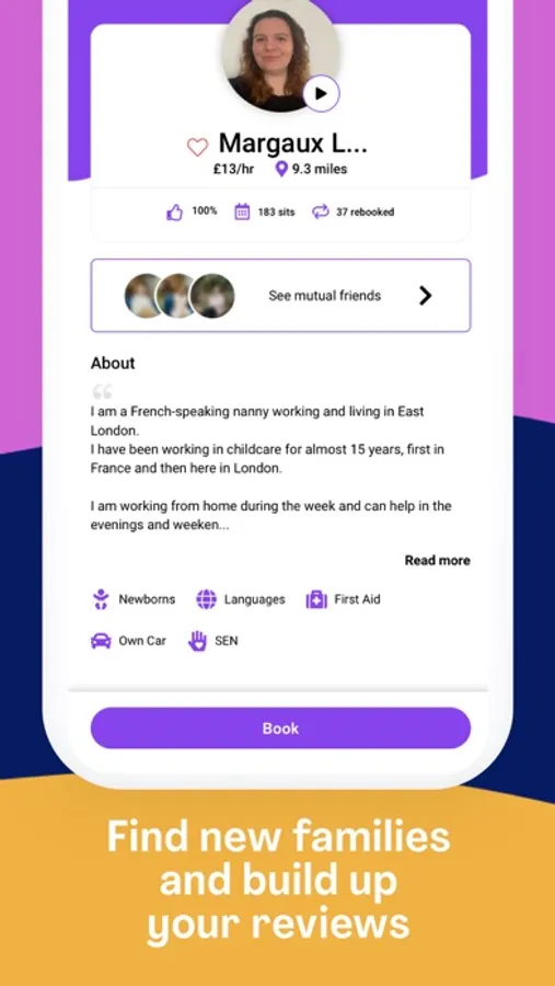 You create a beautiful, verified profile and set your own rate before receiving local job opportunities from nearby parents which you can choose to accept or decline.