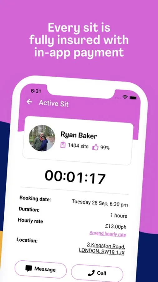 The app handles all payment cashless and securely for you, and you also get complementary insurance on every sit.