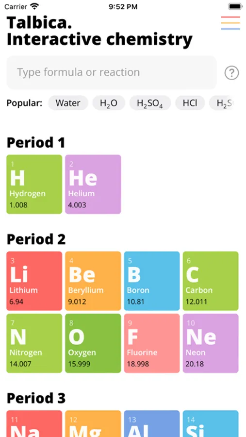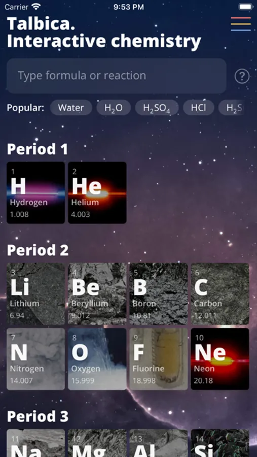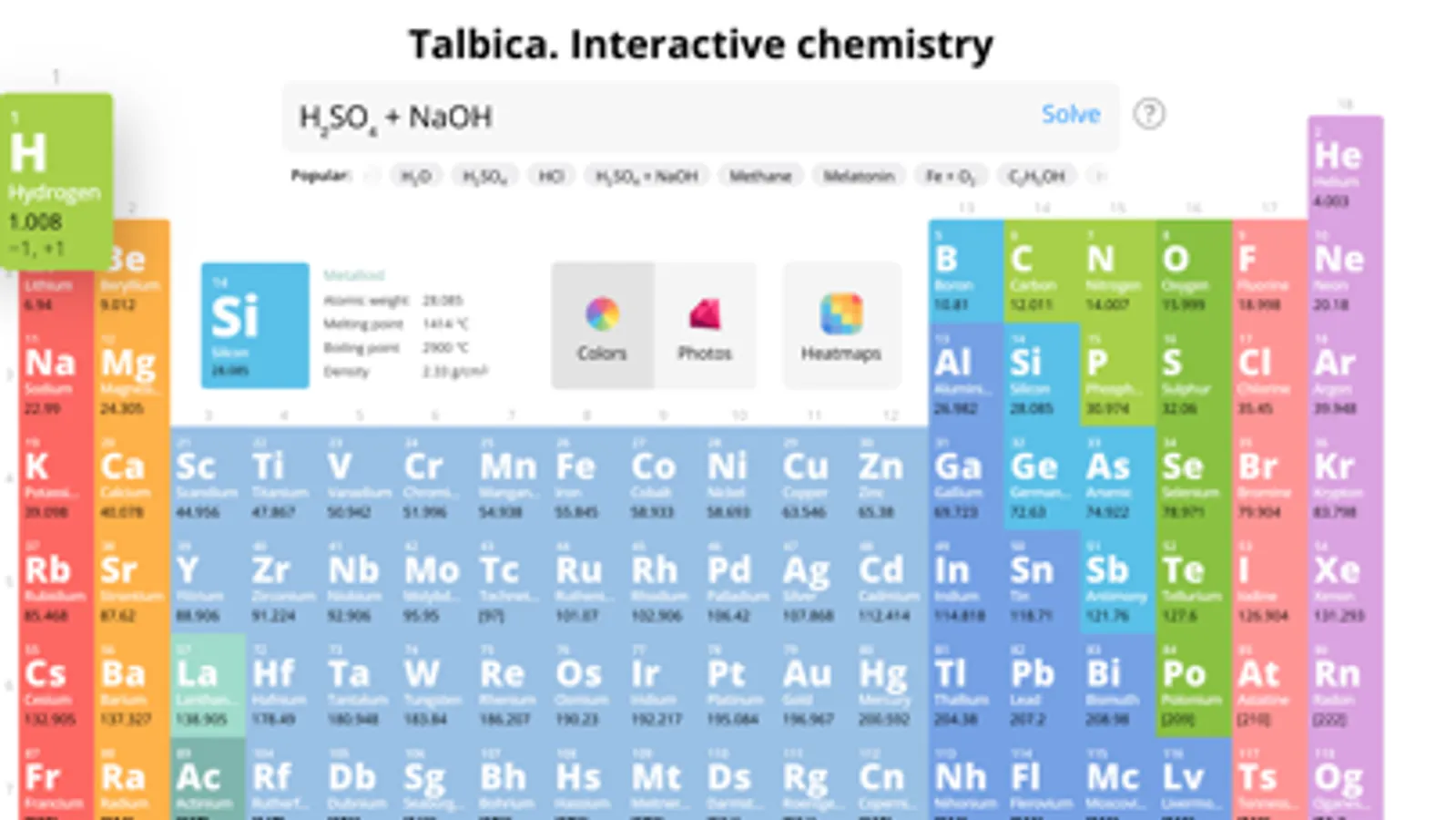 Talbica is a set of Chemistry tools: Periodic table, Compounds database and Reactions reference.