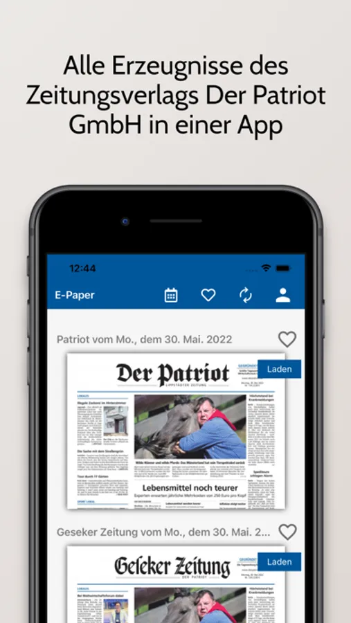 In der Patriot-App lassen sich alle digitalen Zeitungen lesen – dazu zählen Der Patriot selber, die Geseker Zeitung, das Rüthener Volksblatt, sowie unser Blicker und unsere Magazine.