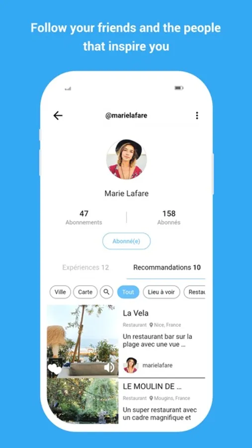 Follow your friends and your favorite accounts to see their news and their tips for your next trip.