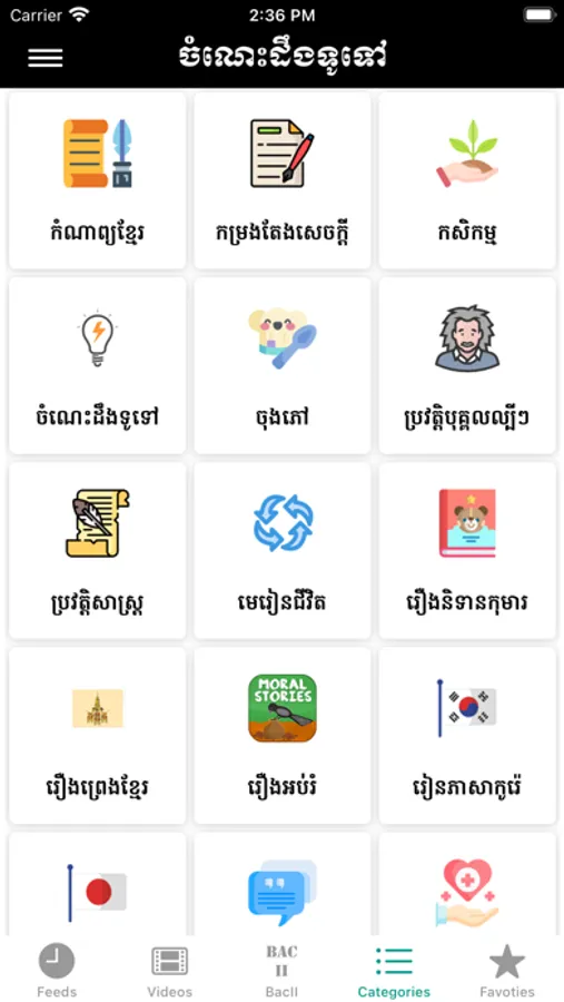Khmer General Knowledge is brand new app for sharing general knowledge to people. It contains a lot of information, knowledge, educational materials for people including children. By using this app, people can get information such as health tips, quote from successful people, education video, Khmer History, Khmer Literature, background and biology of famous people around the world, Khmer Poems, Khmer Culture, Khmer Riddle Question, and Khmer Proverb. We also add entertainment material to app such as TV Live, Radios Live for people to get news, entertaining program....