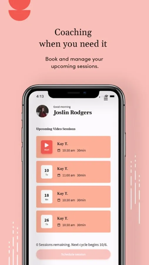 Joining Blush makes life coaching convenient. You can text as much as you’d like, and you’ll always speak with the same coach every time.