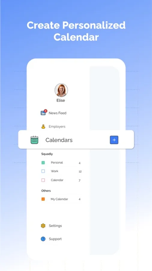 MySquadly’s calendar helps you mark important dates, keep an eye on events and notify you of upcoming deadlines. You can personalize your calendar by naming and choosing a custom color theme for it.