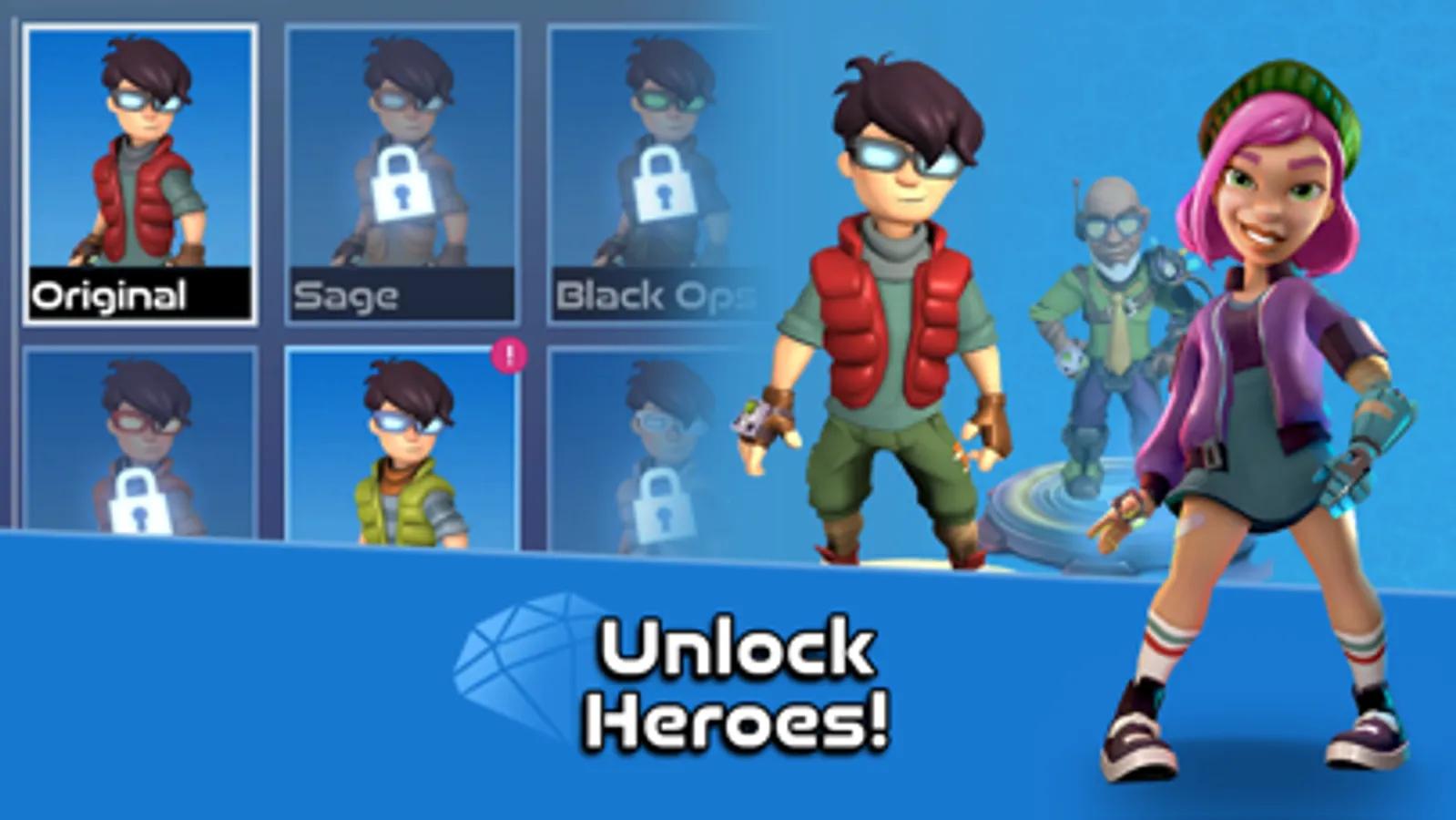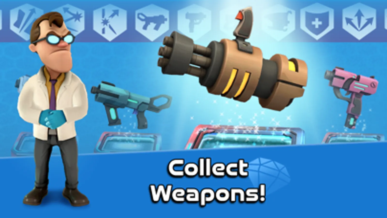 Turbo Shot features a ton of upgradable power-ups, guns and characters. Power-Ups are littered throughout the game world for you to pick up, improving your fire rate or giving you a shield. Unlock a variety of weapons and characters with their own unique attributes, then upgrade and max out their potential!