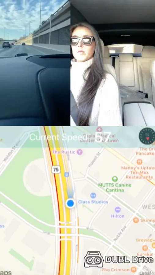 DUBL Drive is a dash cam app that records the front and rear camera simultaneously, while also recording your speed and GPS location directly into the video.