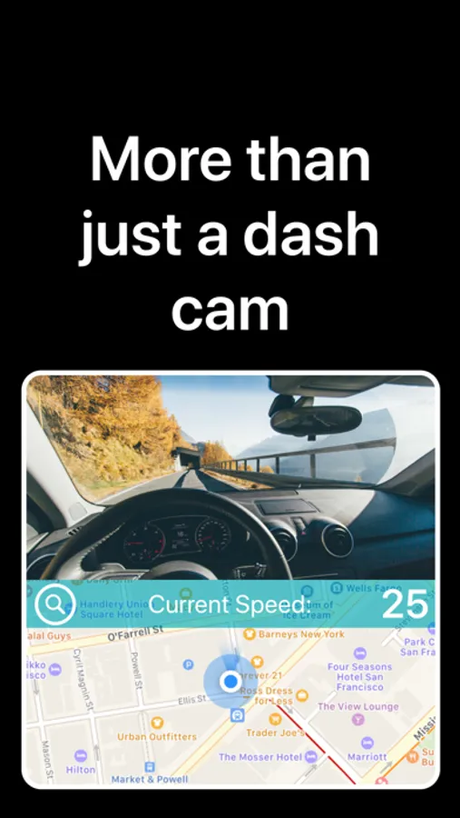 When heavy breaking or an impact is detected above 10 MPH, the app will record the previous 20 seconds and the following 10 seconds, and then automatically save the video to your library.