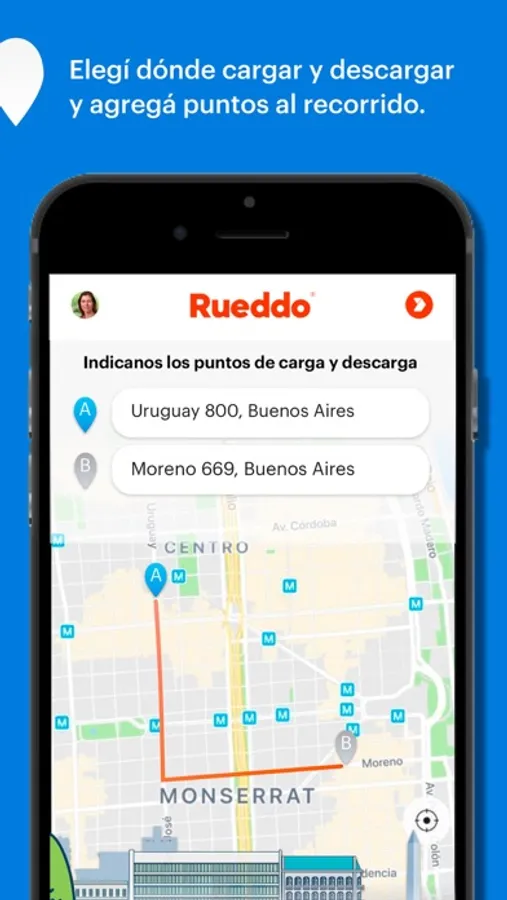 - Ingresá las direcciones y puntos intermedios de tus entregas.