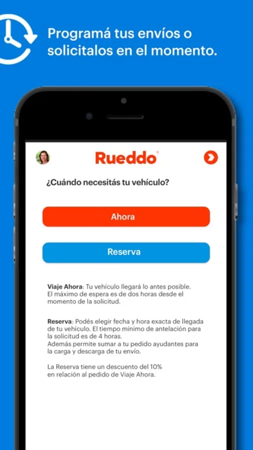 - Pedí tu vehículo en forma inmediata o lo reservalo para el día y hora de tu conveniencia.