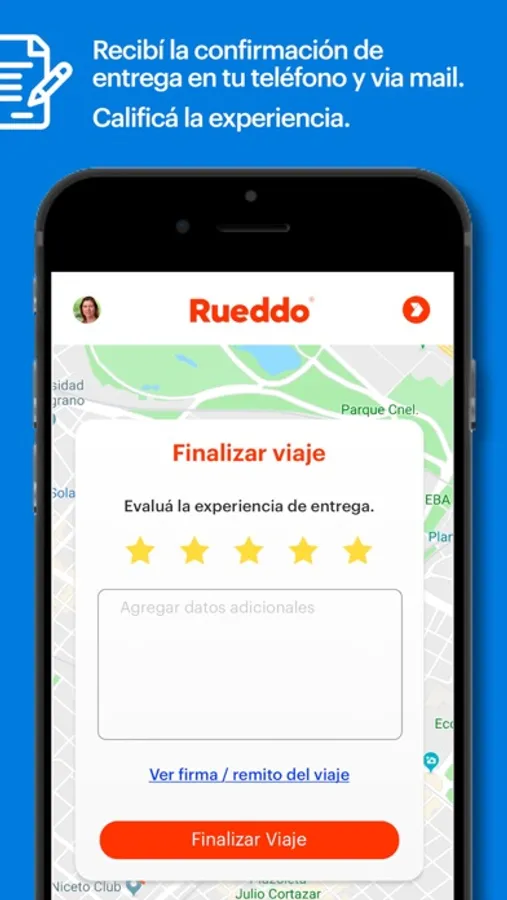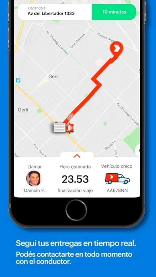 Disponé de un vehículo de carga exclusivo para vos. Al hacer un pedido de envío vas a poder ver la información del transportista a cargo, sus datos de contacto, seguir el vehículo en tiempo real y recibir la confirmación de la entrega con firma o remito. Al finalizar el viaje podrás calificar el servicio y sugerir mejoras.