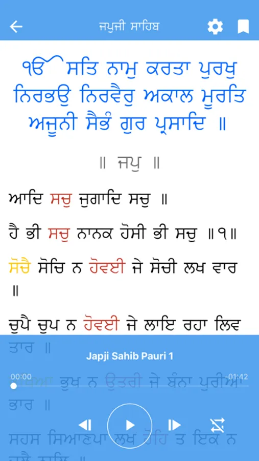 Features of this app include: Gurbani text, Kirtan tracks, Pauri-by-pauri recording of Gurbani
