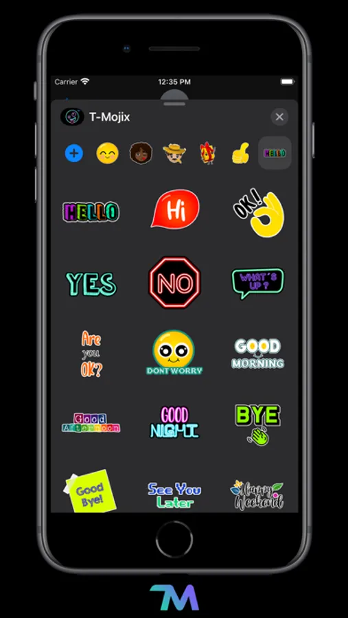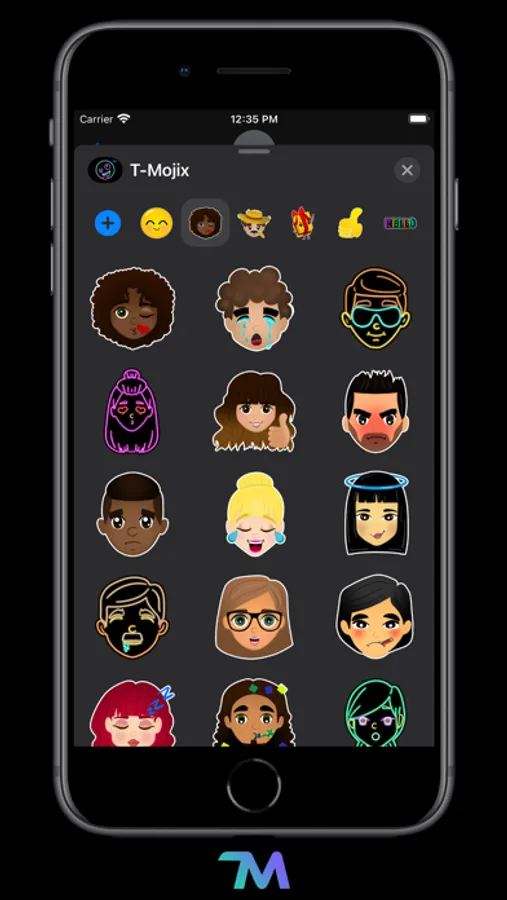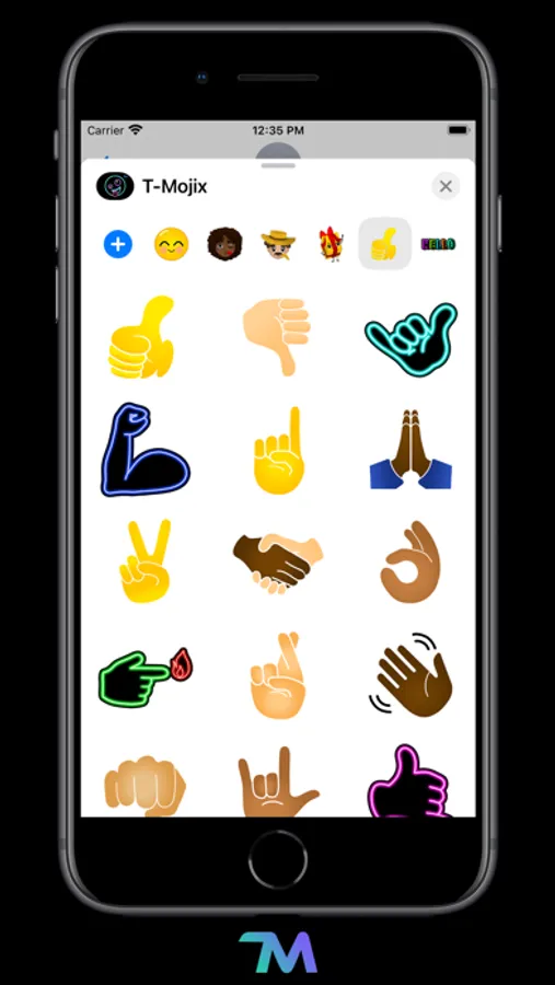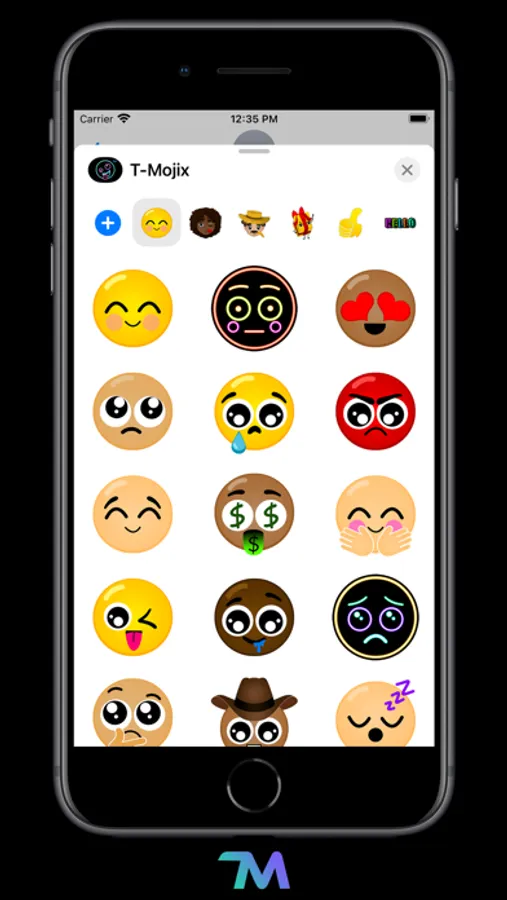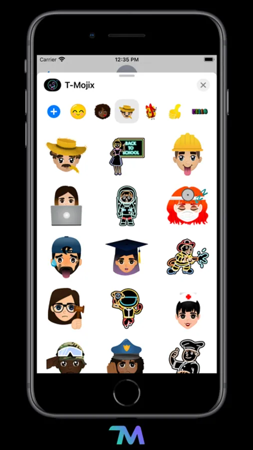 T-Mojix includes 135 emojis of smileys, people, occupations, expressions, hands and texts. Use all of them on iMessage and WhatsApp. Express yourself and have fun sending T-Mojix stickers to your friends and family.