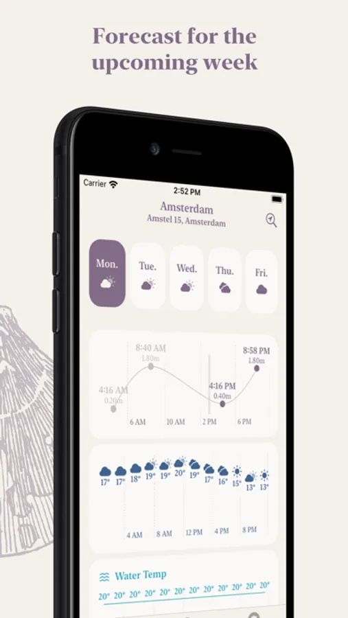 • Tide Forecast: Whether you're planning a family day out or a solo surfing trip, choose the best moment of the day!