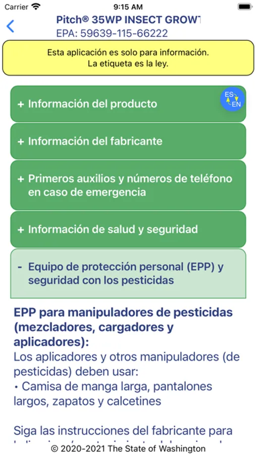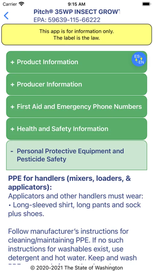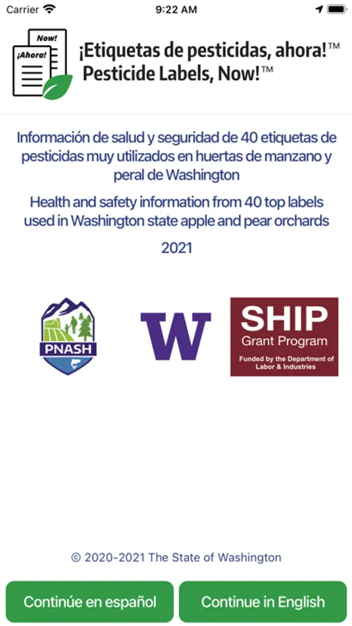 Welcome to Pesticide Labels, Now!™ The app with pesticide label health, safety, & environmental protection information in Spanish & English on your phone, anytime, anywhere. Just one tap to change the language. Online, you can also download labels approved for Washington State* and connect to WPS training and information.
