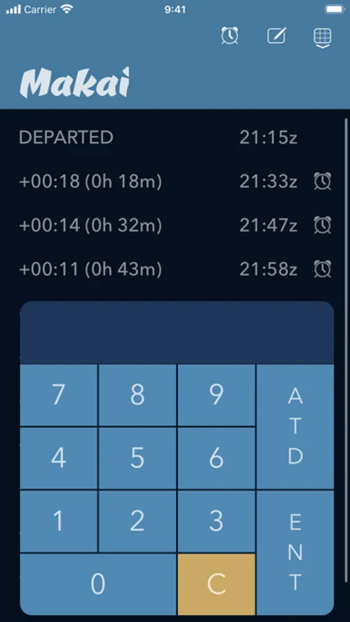 After departure, enter your actual time off the ground and the waypoint estimates will be calculated and presented for easy flight plan log entry.
