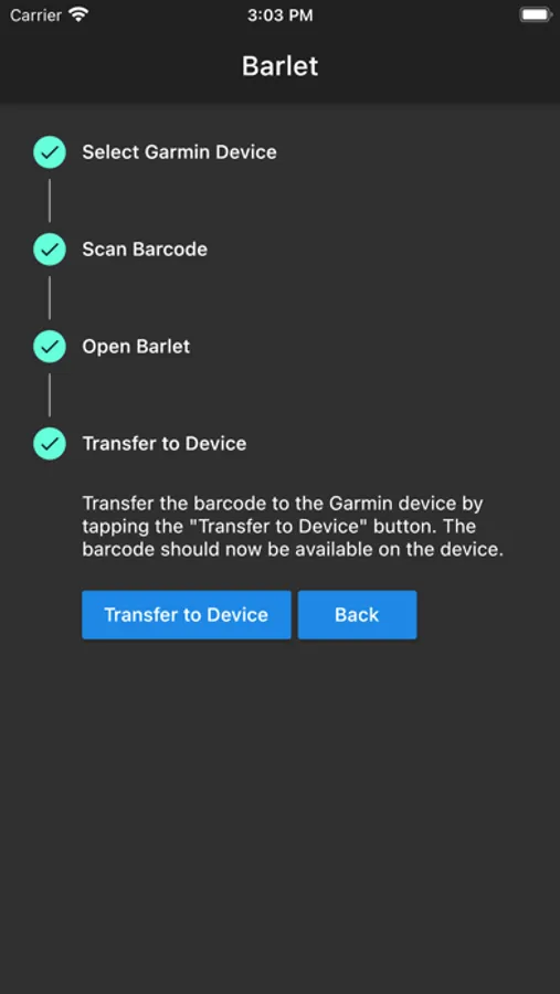 The easiest way to load barcodes on to your Garmin wearable. Scan the barcode, give it a name, send it to your device.