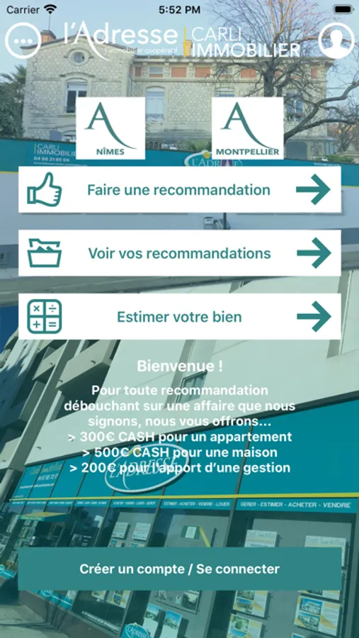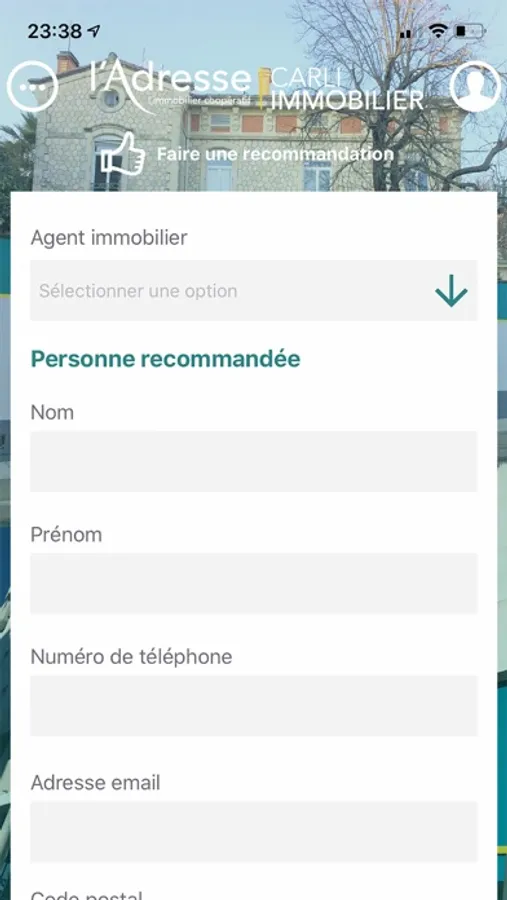 Avec l'application Immobilière L’Adresse Carli Immobilier , vous pourrez nous recommander un bien immobilier en quelques minutes et l'envoyer à l'agent immobilier de votre choix.