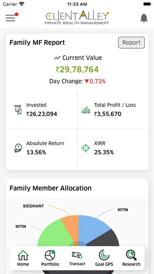 The ClientAlley app, this app is provide more feasible features for show the user profile, this app is show that how to easily understand the investment status via app like user portfolio, investment,goal etc and more think.
