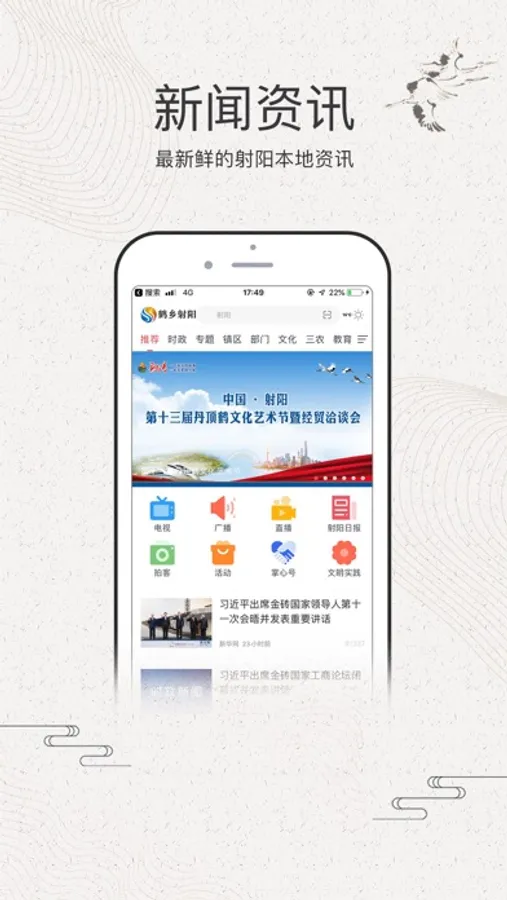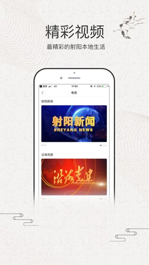 “鹤乡射阳”APP是射阳县融媒体中心官方手机客户端,旨在立足权威性、注重地方性、突出服务性,提供准确及时的政务动态和政策解读,多方汇集网络民意,有效提供民生服务。通过“鹤乡射阳”手机客户端,您可以随时阅读《射阳日报》获取及时、权威、准确的射阳重大政务资讯,可以在线收听收看FM105.7、电视频道等广播电视节目,也可以在线观看实时拍摄的直播内容并与其他用户进行互动,更有天气预报查询、酒店美食指引、招聘信息查询等各类实用信息。