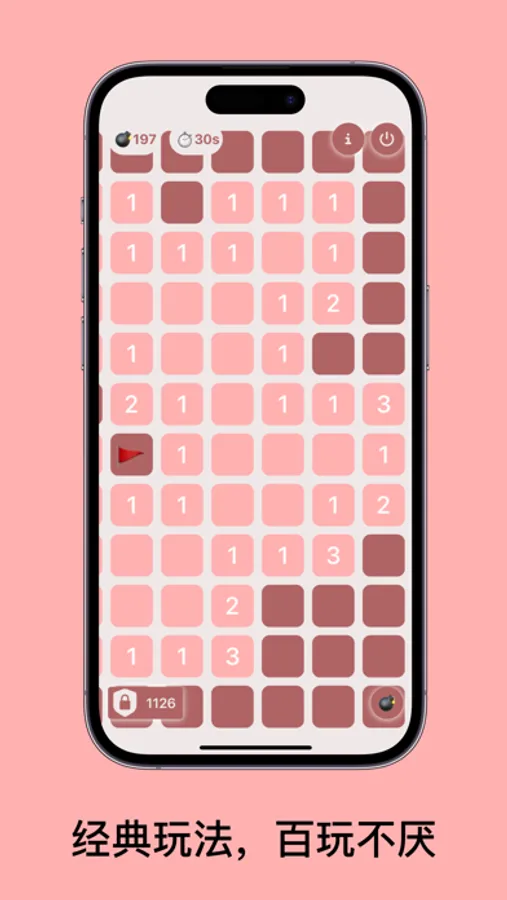 - Click the lower right corner to switch the click mode (mining, or mark the flag)