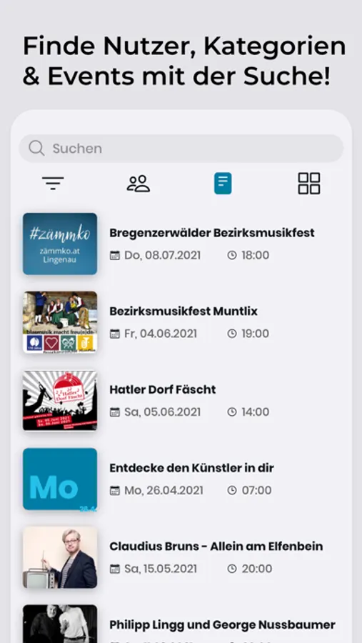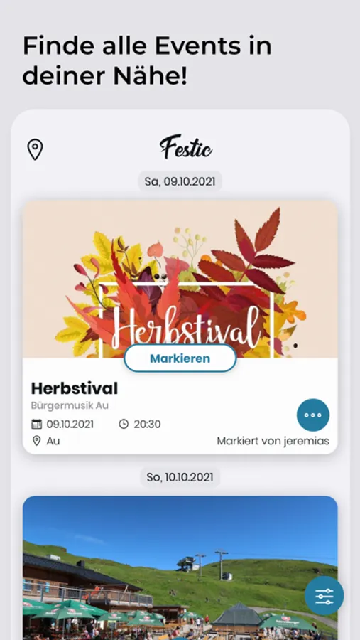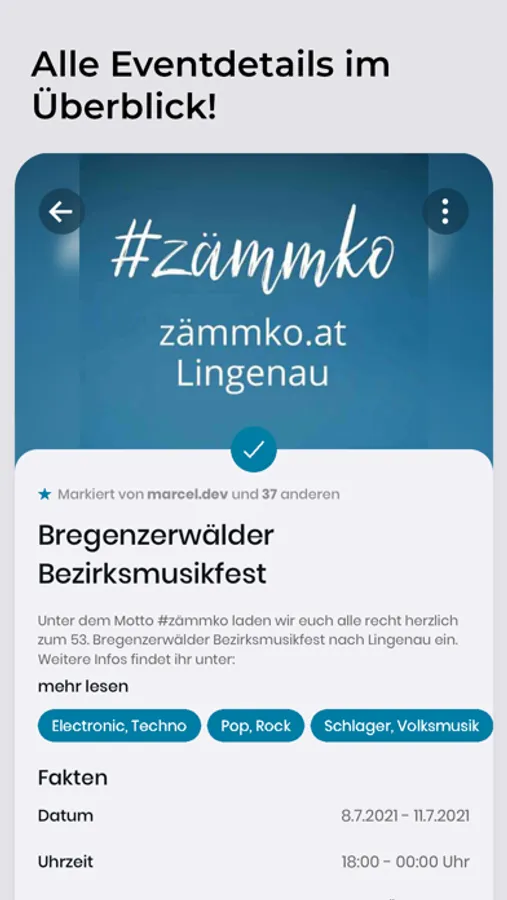 Du kannst in deinem Feed Events nach Standort und Genre filtern und findest so genau die Events, die zu dir passen.