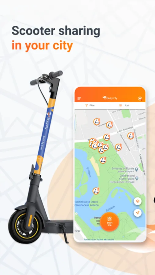 BusyFly is a unique international rental service project which unites Car Sharing, Scooter Sharing and Bike Sharing services in one app.