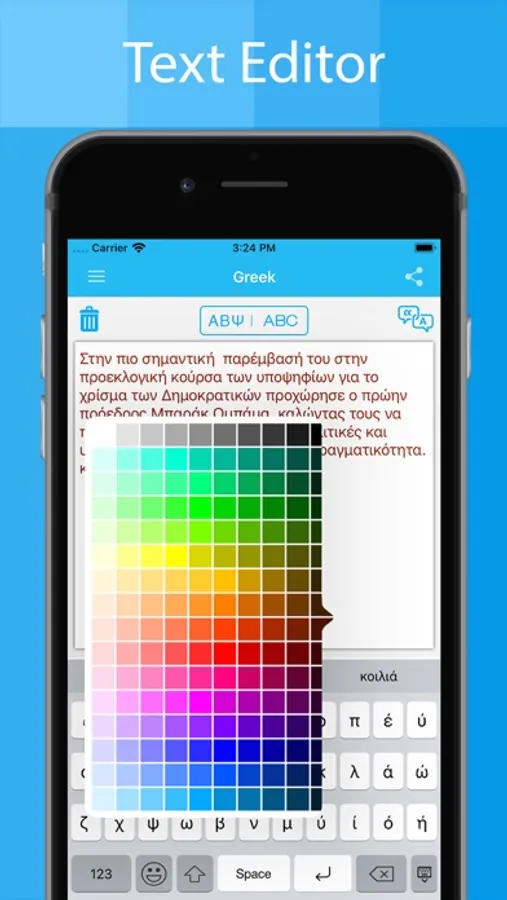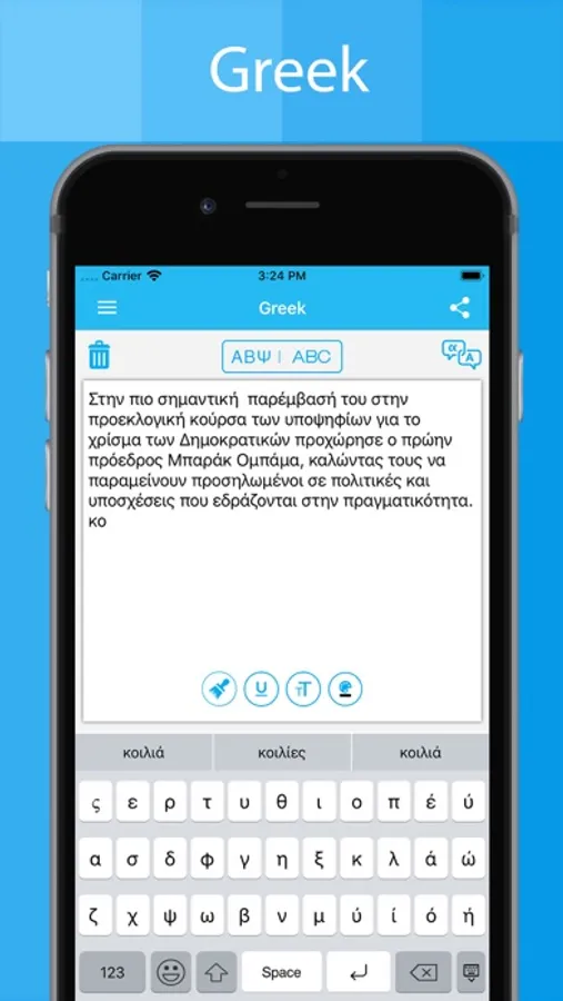 Greek keyboard app will allow you to write message, story, facebook posts, blogs, Emails in Greek language.