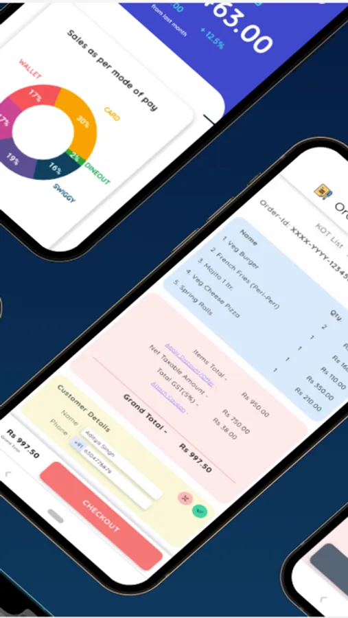 Everything from customers placing their orders, to staff members processing them, to the owners getting stats of daily performance can be achieved just on your phone with the help of our application.