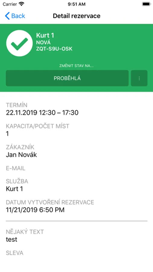 Aplikace umožňuje prohlédnout a zkontrolovat informace o zákaznické rezervaci a následně také změnit její stav. Je tak možné efektivně odbavovat rezervované zákazníky při vstupu na danou kulturní akci, využití sportoviště, apod.