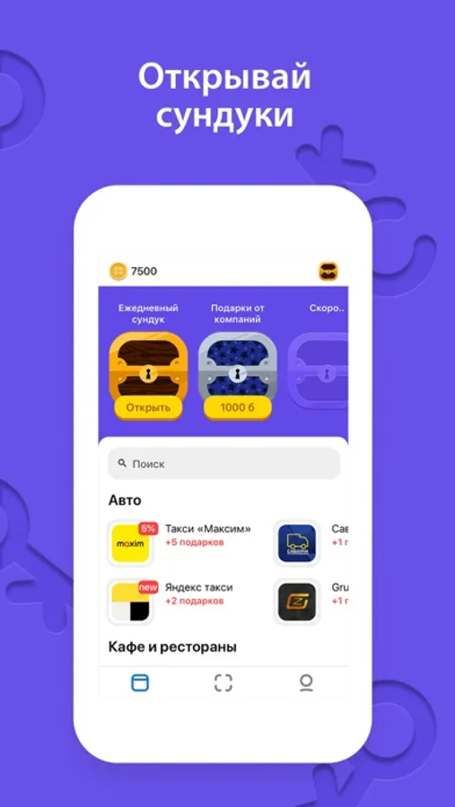 Получай подарки от компаний твоего города каждый день! Открывай сундуки за баллы или с каждой покупки, приглашай друзей, узнавай о самых интересных акциях твоего города!