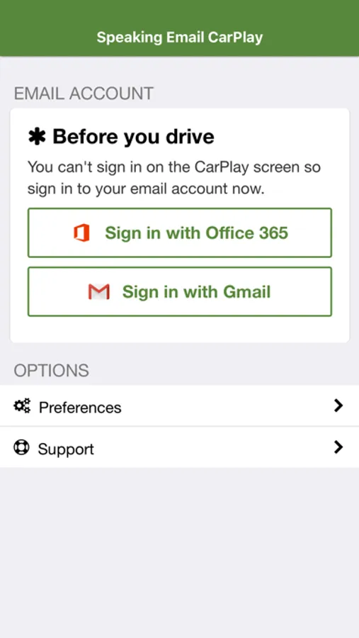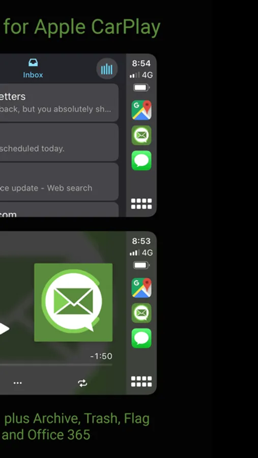 Just download our app, sign in to your email account, and your emails will be read out loud to you on your CarPlay!