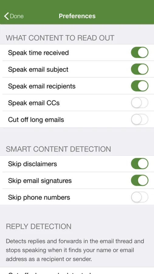Email reading is different from general text-to-speech. Emails are choked with signatures, disclaimers and thread headers.