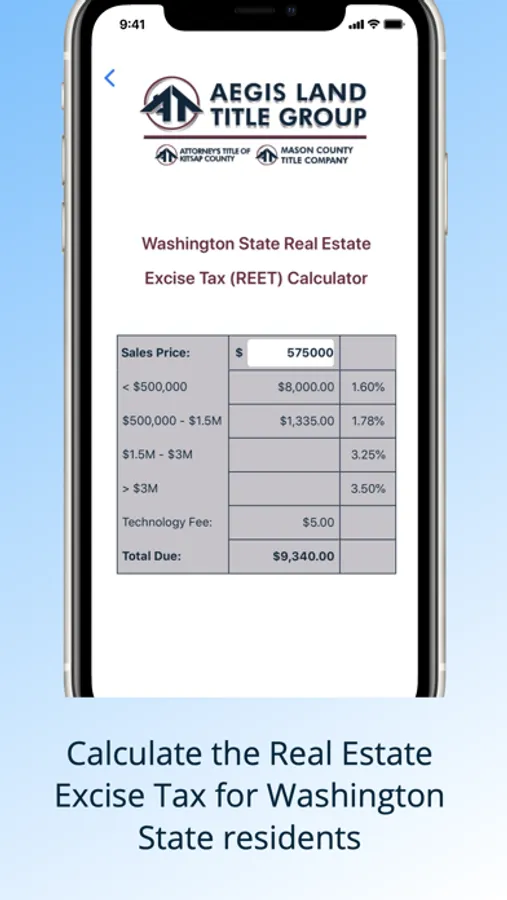 • Enter the sales price and get a REET estimate, broken down by each tax range.