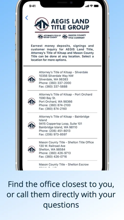 • Select an office from the list to locate it on a map or call it directly from the app!