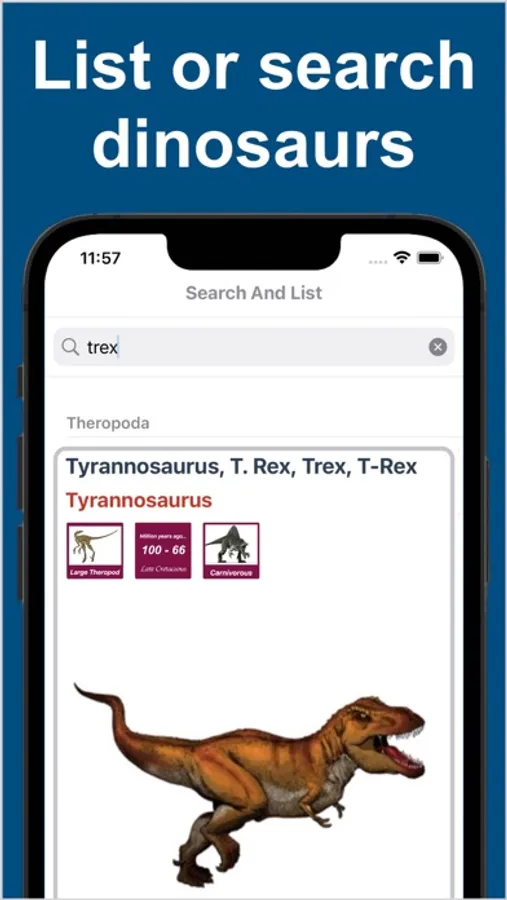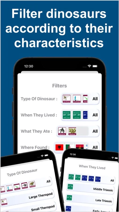 Search related dinosaurs in the list according to filters you selected. And please let us know what you liked or not liked about our app and contribute with your suggestions for the future releases.