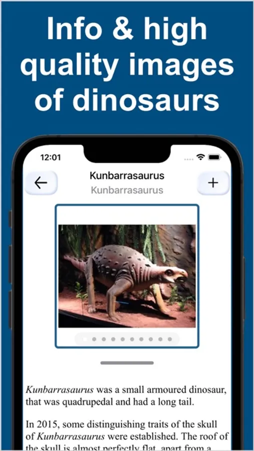 Read information about each dinosaur in detailed pages, learn and figure out dinosaur types.