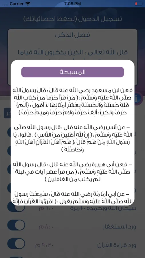 بتنبيهات صوتية تنبهك من وقت للآخر وتذكرك بأورادك بطريقة بسيطة وبدون إزعاج