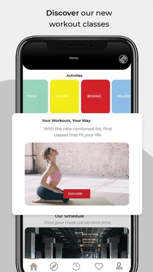 Discover all 51 GYM fitness, cycling, yoga, boxing, pilates classes, even book your personal training on-the-go.