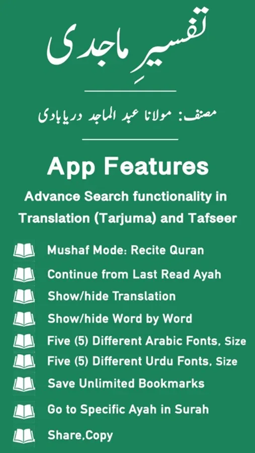 - Advance Search functionality in Quran, Translation (Tarjuma) and Tafseer
