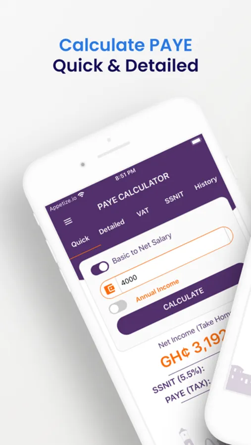 Ghana PAYE Calculator calculates your Income Tax based on your Salary and SSNIT Contribution (5.5%) and gives you an accurate representation of what you are to pay. This part is useful for everybody. The User Interface is neatly designed and easy to use.